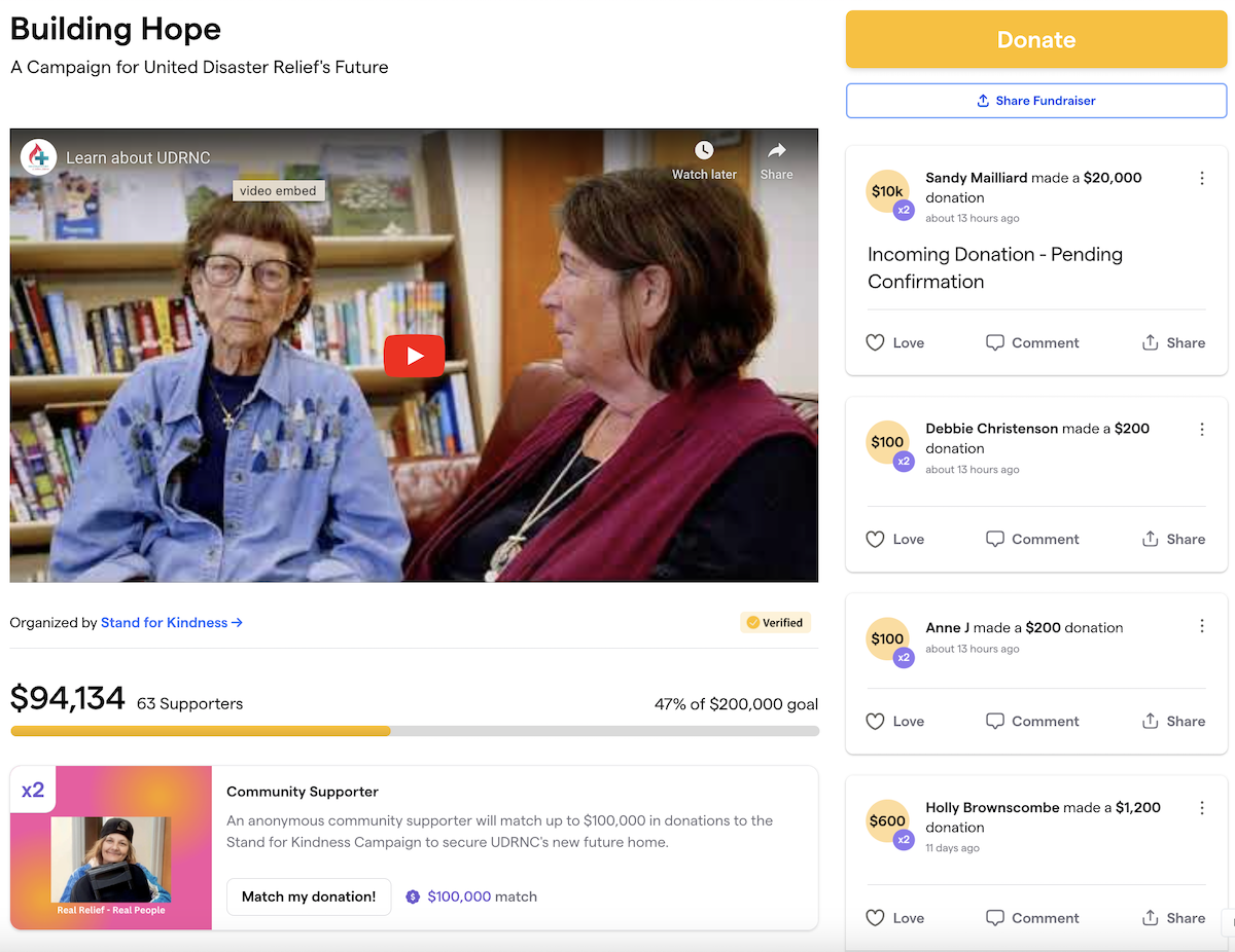 We’re an all-volunteer nonprofit disaster resource center and would like to create a hired position eventually. We just moved into a new building and are raising money in an end-of-year campaign using the Givebutter platform.